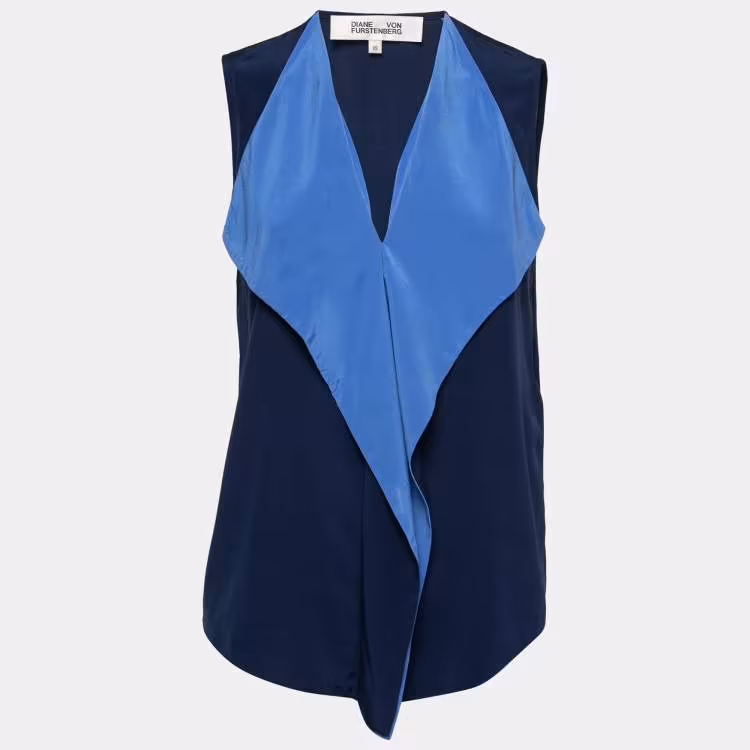 مملوكة مسبقًا Diane von Furstenberg Blue Silk Sleeveless Top XS