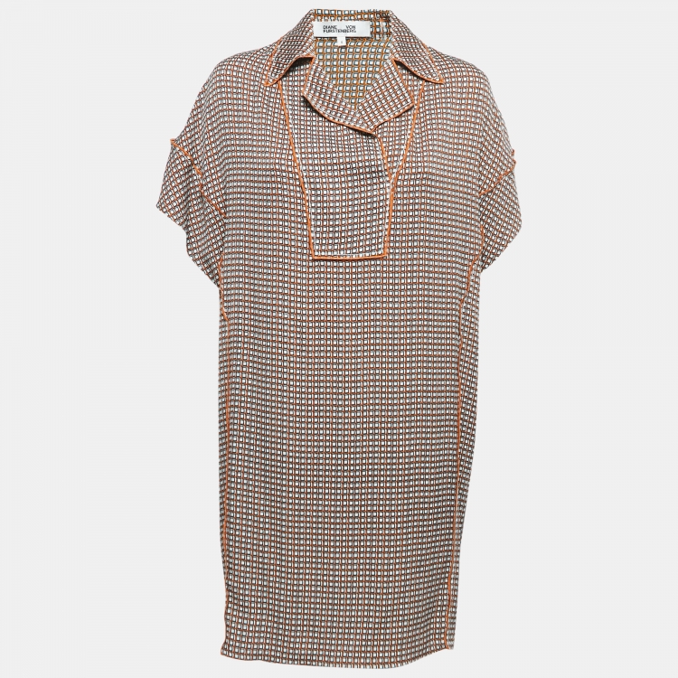 مملوكة مسبقًا Diane Von Furstenberg Orange Print Silk Mini Shift Dress S