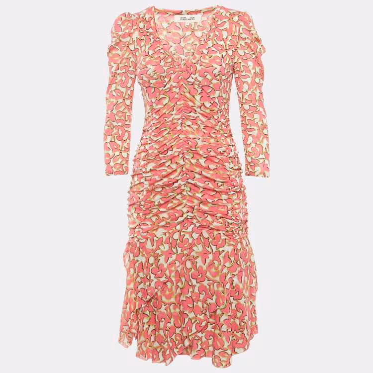 Pre Owned فسـتان ديان فون فرستنبرغ شبك مطبـوع وردي مجعـد متوسط