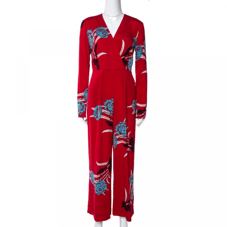مملوكة مسبقًا جمبسوت ديان فون فرستنبيرغ "فارين" كريب مطبوع مورد أحمر مقاس صغير (سمول)