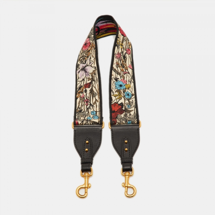 حمالة كتف ديور مطرزة زهور قماش وجلد متعددة الألوان