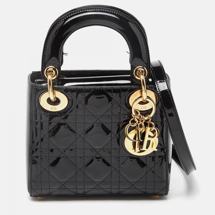 Pre Owned حقيبة يد توتس ديور ميني ليدي ديور جلد كاناج أسود لامع
