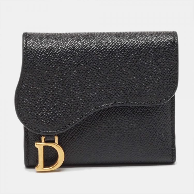 Pre Owned Dior Black Leather Saddle Card Holder