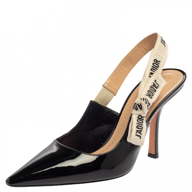 صندل ديور فتحة كعب جاديور جلد لامع أسود مقاس 38.5