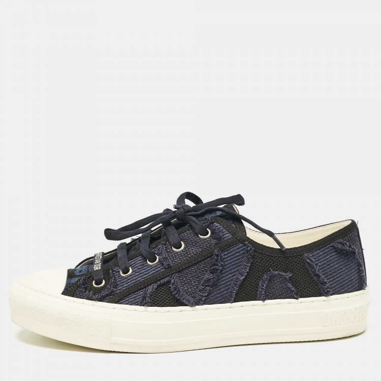 حذاء رياضي ديور عنق منخفض واكن ديور مطاط وكانفاس أبيض/أسود مقاس 39
