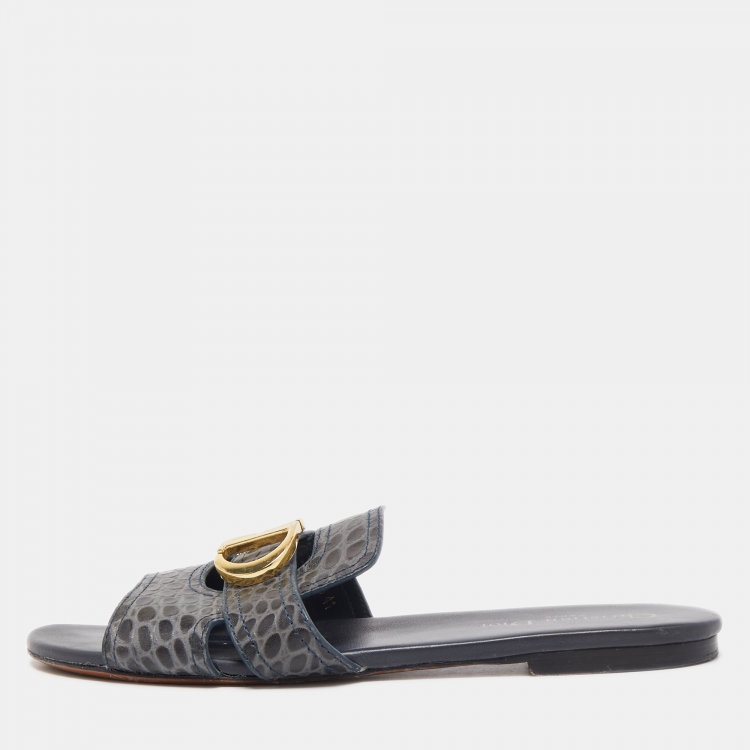مملوكة مسبقًا Dior Black/Grey Leather 30 Montaigne Slide Flats Size 41