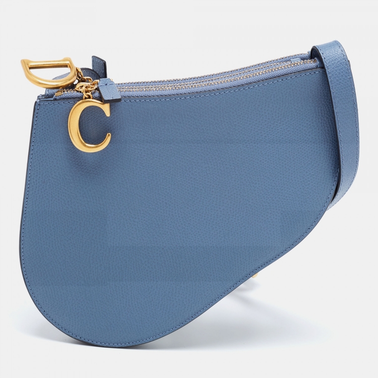Pre Owned حقيبة كروس ديور سادل جلد زرقاء بسحاب ثلاثي