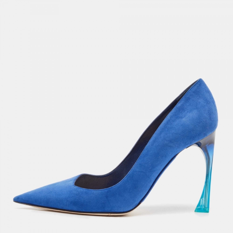 Pre Owned حذاء كعب عالي ديور مقدمة مدببة سويدي أزرق كعب مظلل مقاس 37