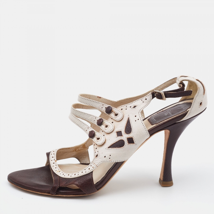 Dior Brown/White Brogue Leather Lasercut Sandals Size 40