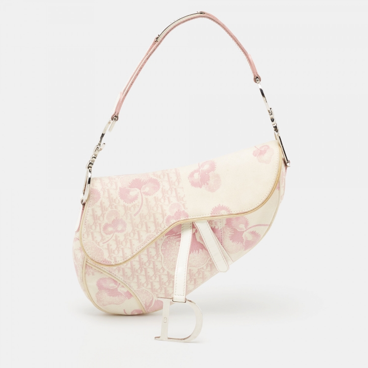 Pre Owned حقيبة ديور سادل جلد لامع وكانفاس مطبوع أبيض / وردي داكن