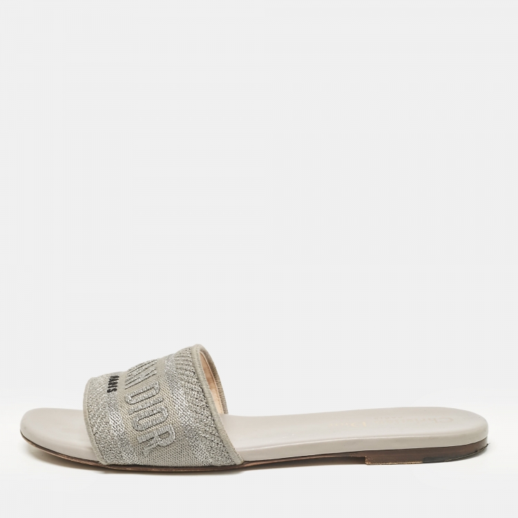 Dior Grey Canvas Dway Flat Slide Sandals Size 37