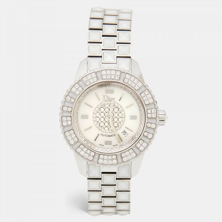 Pre Owned Dior Mother Of  Pearl Diamonds Stainless Steel Christal CD113512M001 Women's Wristwatch 33 mm