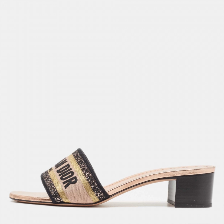 Dior Multicolor Canvas Logo Embroidered Canvas Dway Slide Sandals Size 39