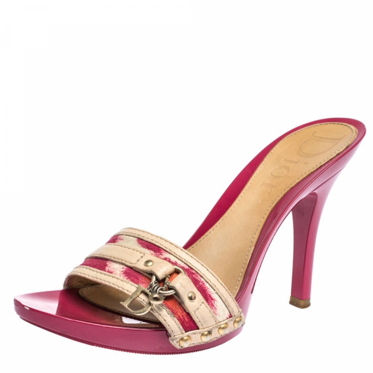 صندل كلوغ ديور بمقدمة مفتوحة جلد و كانفاس مطبوع متعدد الألوان مقاس 37.5
