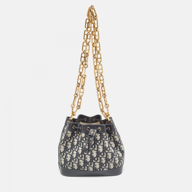Pre Owned حقيبة باكيت ديور جلد وكانفاس أوبليك أزرق كحلي برباط وسلسلة