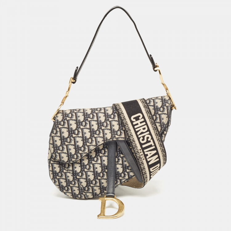 Dior Navy Blue Oblique Canvas Saddle Bag