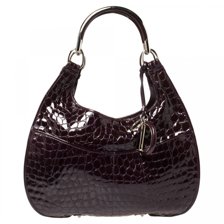 Pre Owned حقيبة يد ديور 61 جلد لامعة نقش تمساح بنفسجية