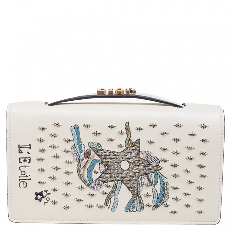 Pre Owned حقيبة كلتش ديور تاروت جلد أبيض مطرزة نجمة
