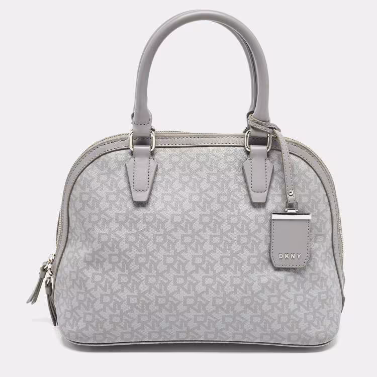 مملوكة مسبقًا حقيبة ساتشيل دي كى أن واى قبة جلد و كانفاس مغلف بشعار رمادي