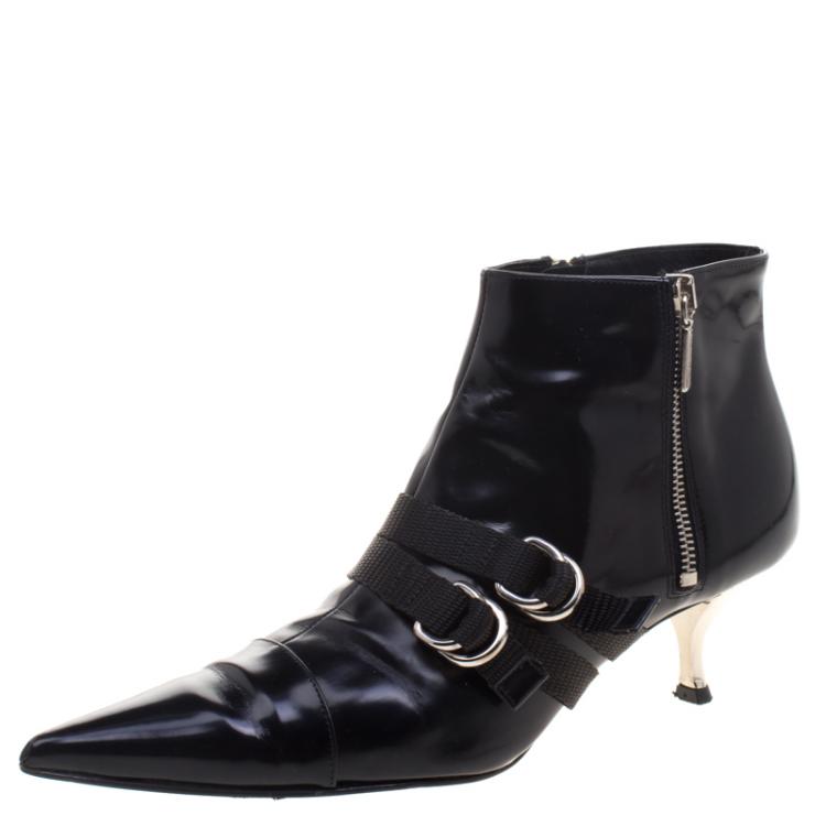 Pre Owned بوت للكاحل دولتشي آند غابانا جلد أسود مقدمة مدببة مقاس 38