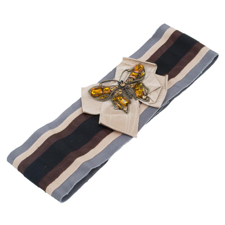 حزام وسط دولتشي أند غابانا حرير بني مضلع فراشة مزخرفة مقاس 38