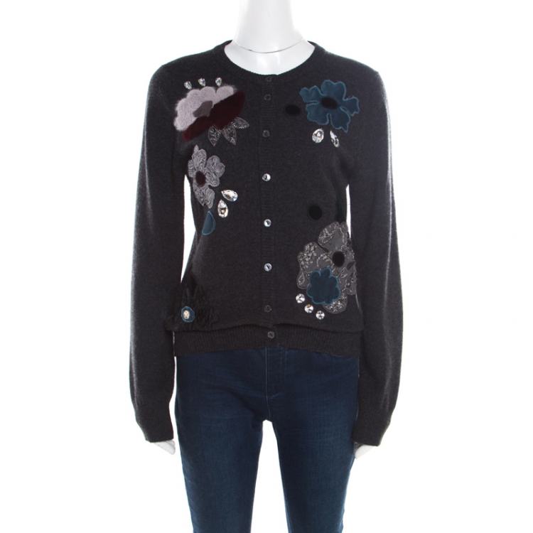 Pre Owned كارديغان دولشي أند غابانا كشمير مزين مطرز بحليات موردة رمادي M