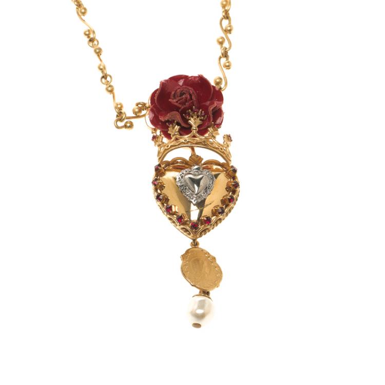 Pre Owned قلادة دولتشي أند غابانا قلب وردي ذهبي اللون دلاية بسلسلة