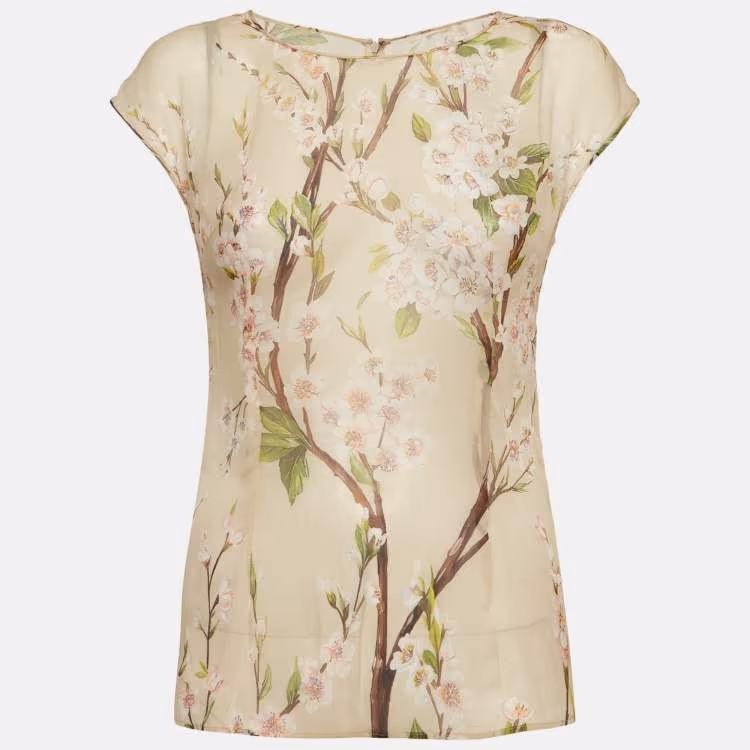 Pre Owned {"name": "Dolce & Gabbana Beige Floral Print Chiffon Sheer Top S", "name_ar": "توب دولتشي آند غابانا شيفون شفاف بطبعة مورد بيج مقاس صغير - سمول"}