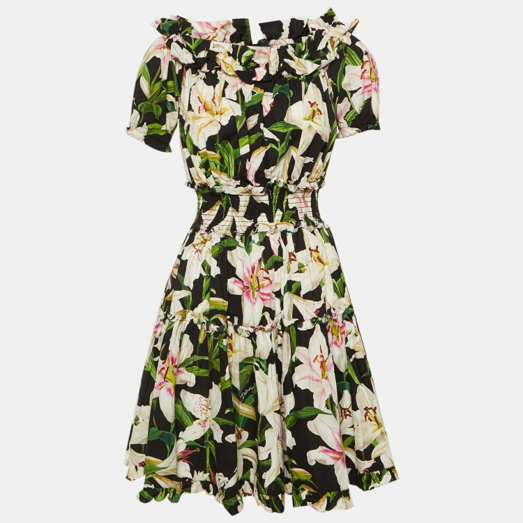 مملوكة مسبقًا فستان دولتشي أند غابانا قطن أسود بطبعة زهور بدون أكتاف مقاس متوسط