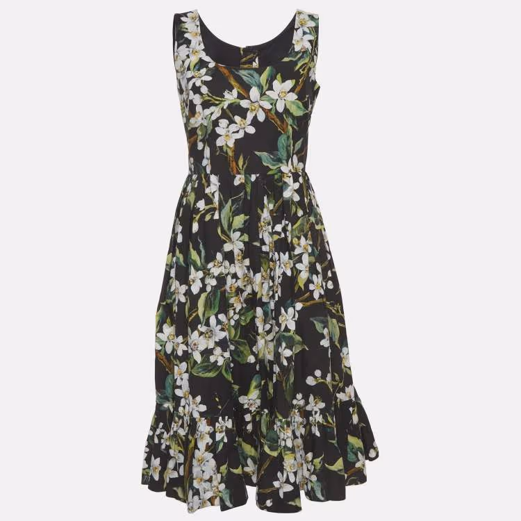 Pre Owned فسنان دولتشي أند غابانا قطن متعدد الطبقات بطبعة زهور سوداء مقاس متوسط (ميديوم)
