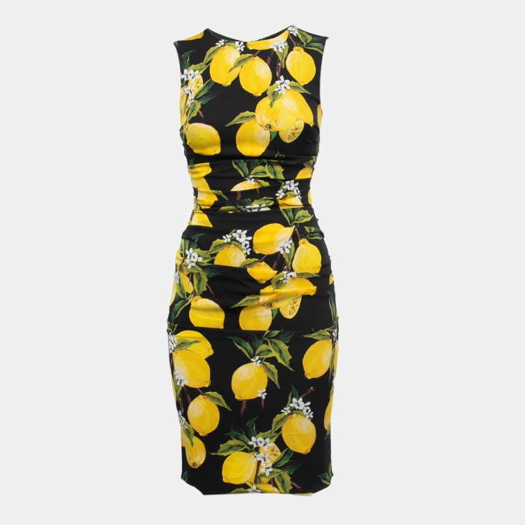 مملوكة مسبقًا Dolce & Gabbana Black Lemon Print Silk Ruched Sleeveless Short Dress S