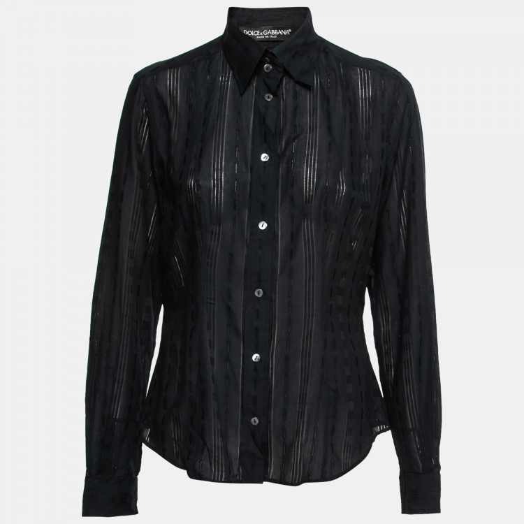 Dolce & Gabbana Black Patterned Cotton Button Front Shirt M