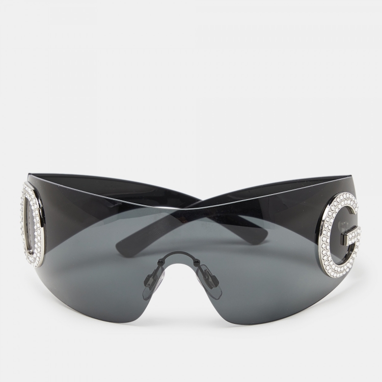 مملوكة مسبقًا Dolce & Gabbana Black/Grey DG2298 Crystal Embellished DG Shield Sunglasses