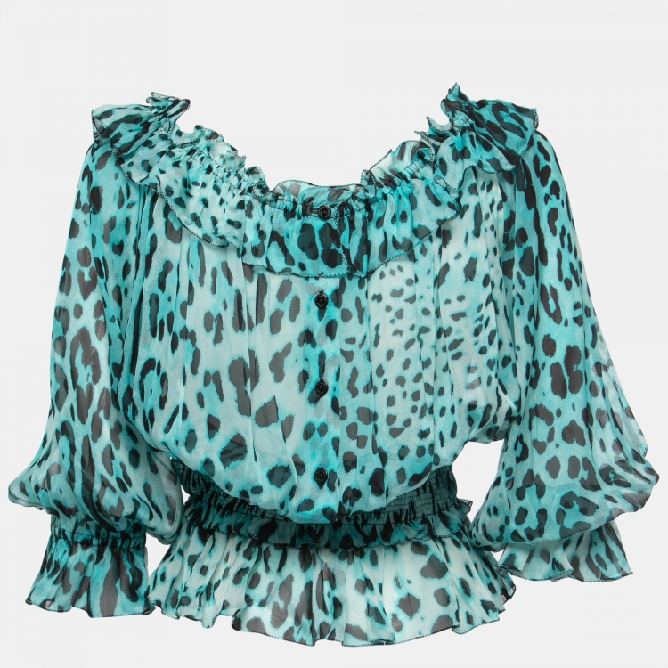 Dolce & Gabbana Blue Animal Printed Silk Top S