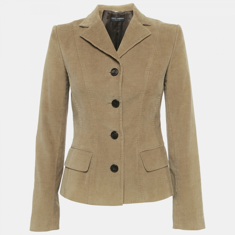 بليزر دولتشي أند غابانا بني مخمل مضلع بأزرار مقاس متوسط (ميديوم)