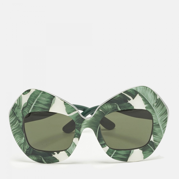 Pre Owned نظارة شمسية دولتشي أند غابانا خضراء DG 4290 بانانا ليف باترفلاي