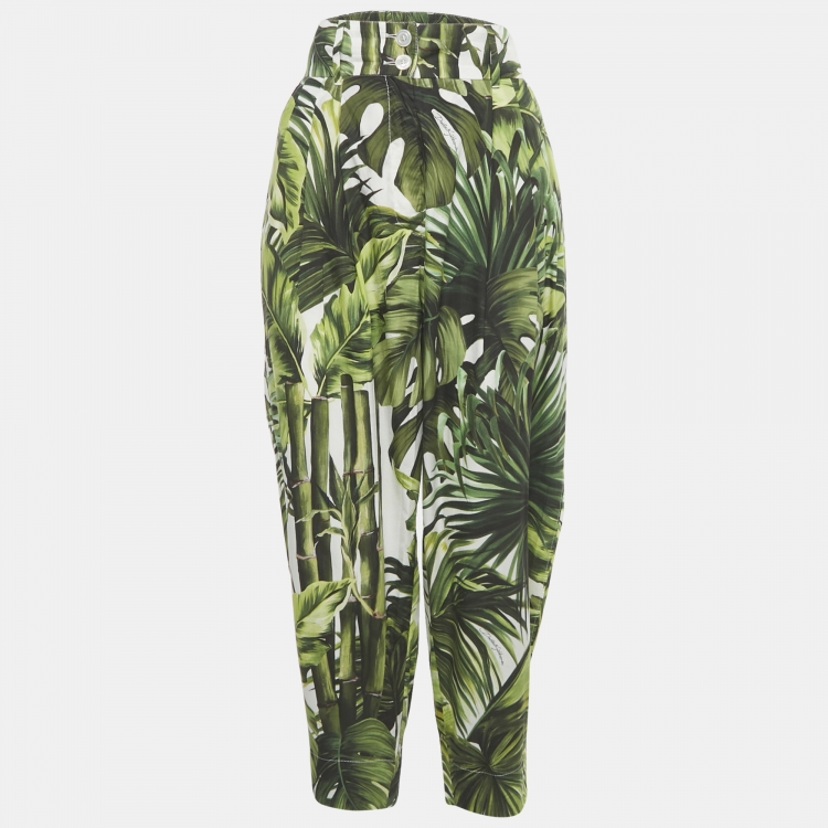 مملوكة مسبقًا بنطالون دولتشي أند غابانا قطني مطبوع استوائي أخضر بخصر عالٍ مقاس كبير - لارج