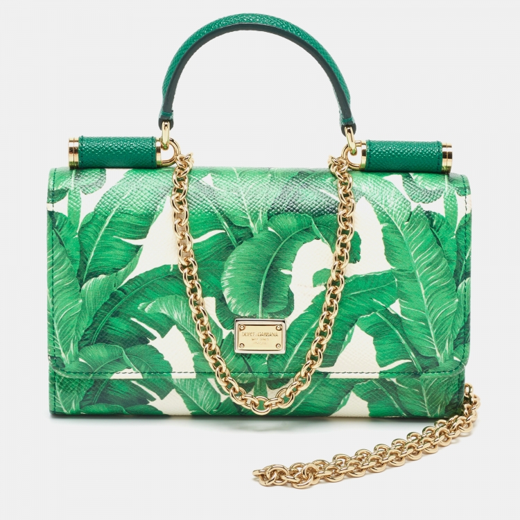 Pre Owned محفظة بسلسلة دولتشي أند غابانا ميس سيسيلي فون جلد أخضر/أبيض مطبوع
