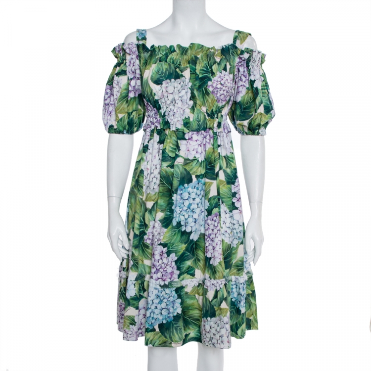 Pre Owned فستان دولتشي أند غابانا بلا أكتاف خصر مطاطي بوبلين قطن طباعة زهور هايدراجينا مقاس صغير