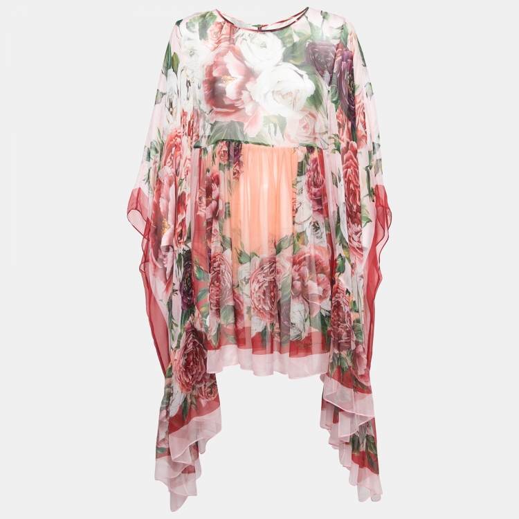 مملوكة مسبقًا Dolce & Gabbana Multicolor Floral Printed Silk Chiffon Asymmetrical Kaftan Tunic Dress M