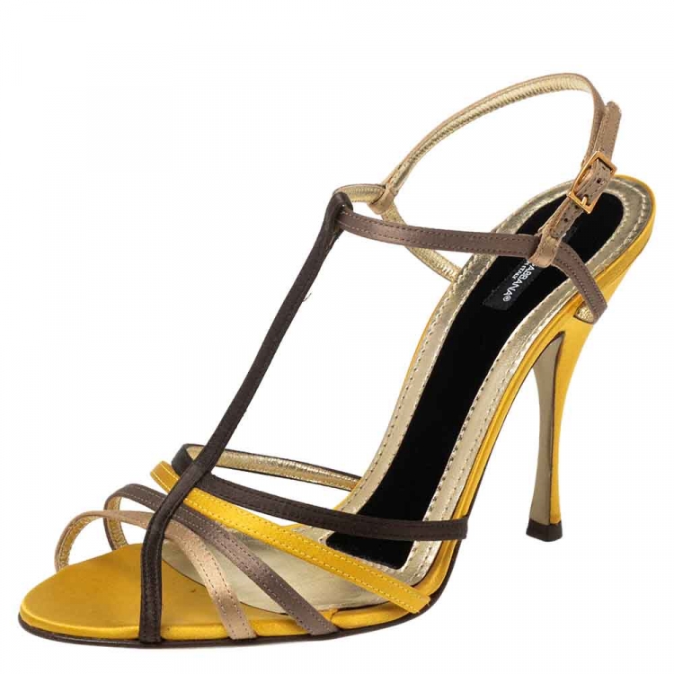 صندل دولتشي أند غابانا ساتان متعدد الألوان بسيور حزام للكاحل مقاس 41