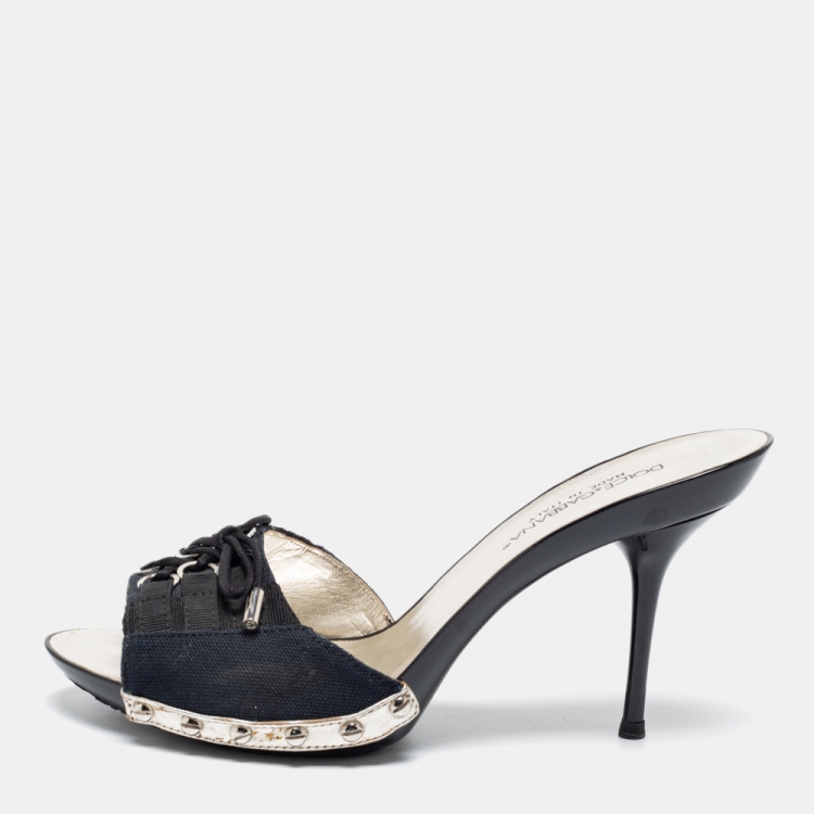 مملوكة مسبقًا صندل سلايد دولتشي أند غابانا كانفاس أسود/أزرق كحلي مقاس 39