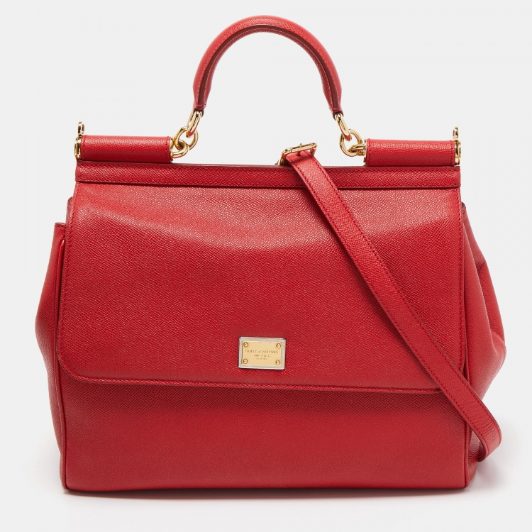حقيبة دولتشي أند غابانا ميس سيسيلي جلد أحمر كبيرة يد علوية