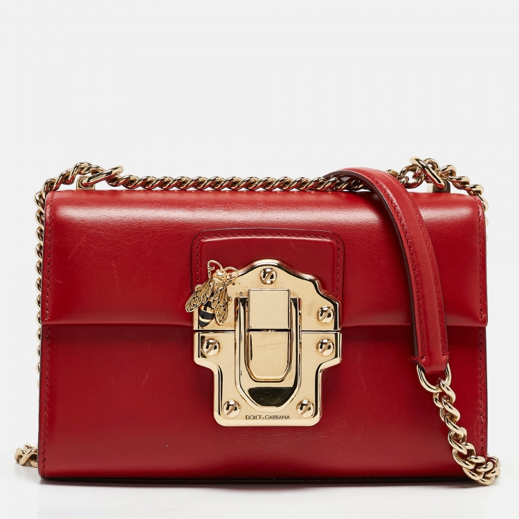 حقيبة كتف دولتشي أند غابانا لوشيا جلد وردي مزخرفة كريستال