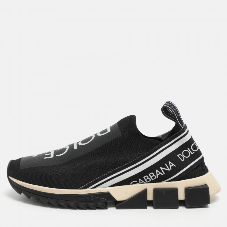 مملوكة مسبقًا حذاء رياضي دولتشي أند غابانا نسيج محاك أسود/أبيض سهل الارتداء سورينتو مقاس 41
