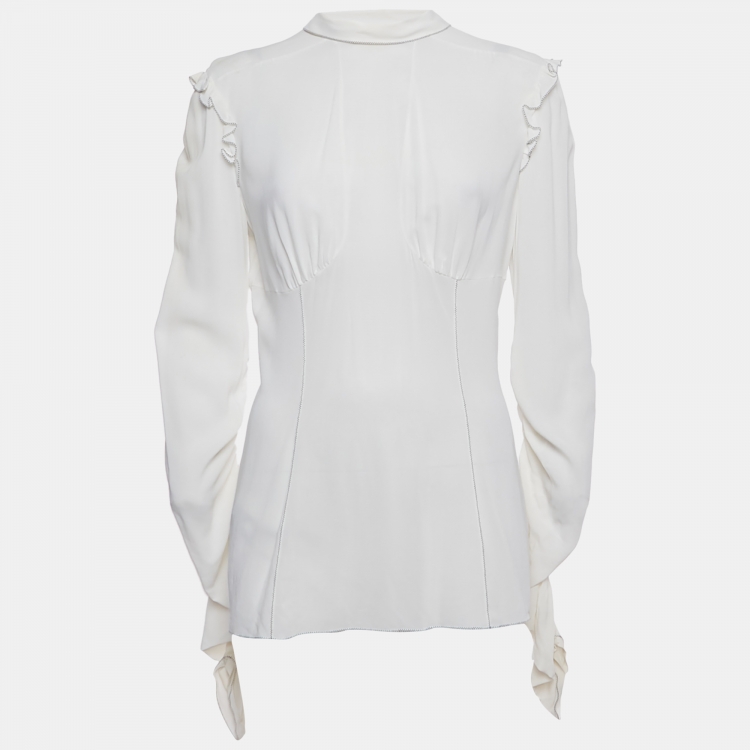مملوكة مسبقًا بلوزة دولتشي أند غابانا كشاكش شيفون أبيض كبيرًا