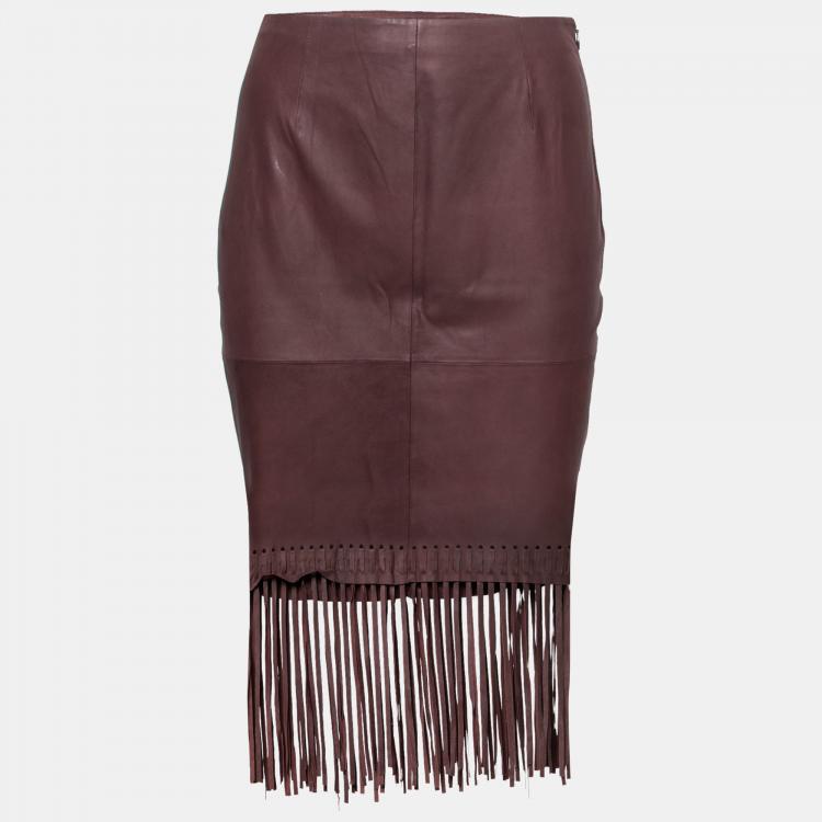 مملوكة مسبقًا تنورة اليزابيث أند جيمس جاكسون جلد ماعز حافة بشراشيب بني S