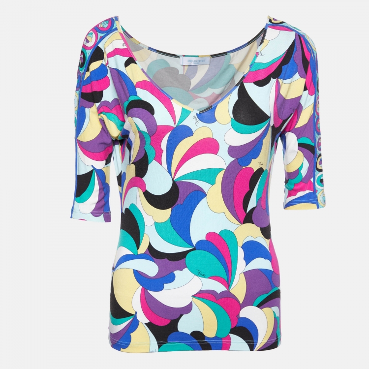مملوكة مسبقًا Emilio Pucci Multicolor Printed Knit V-Neck T-Shirt L