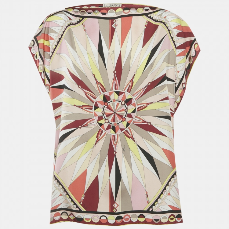 مملوكة مسبقًا قميص كافتان تونيك حرير مطبوع متعدد الألوان إميليو بوتشي مقاس موحد