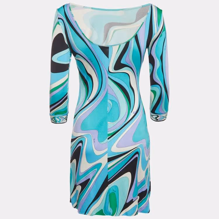 Pre Owned فساتين ميني جيرسيه إيميليو بوتشي بطباعة دوامات متعددة الألوان مقاس صغير